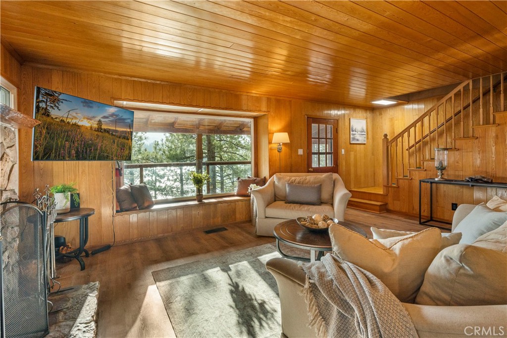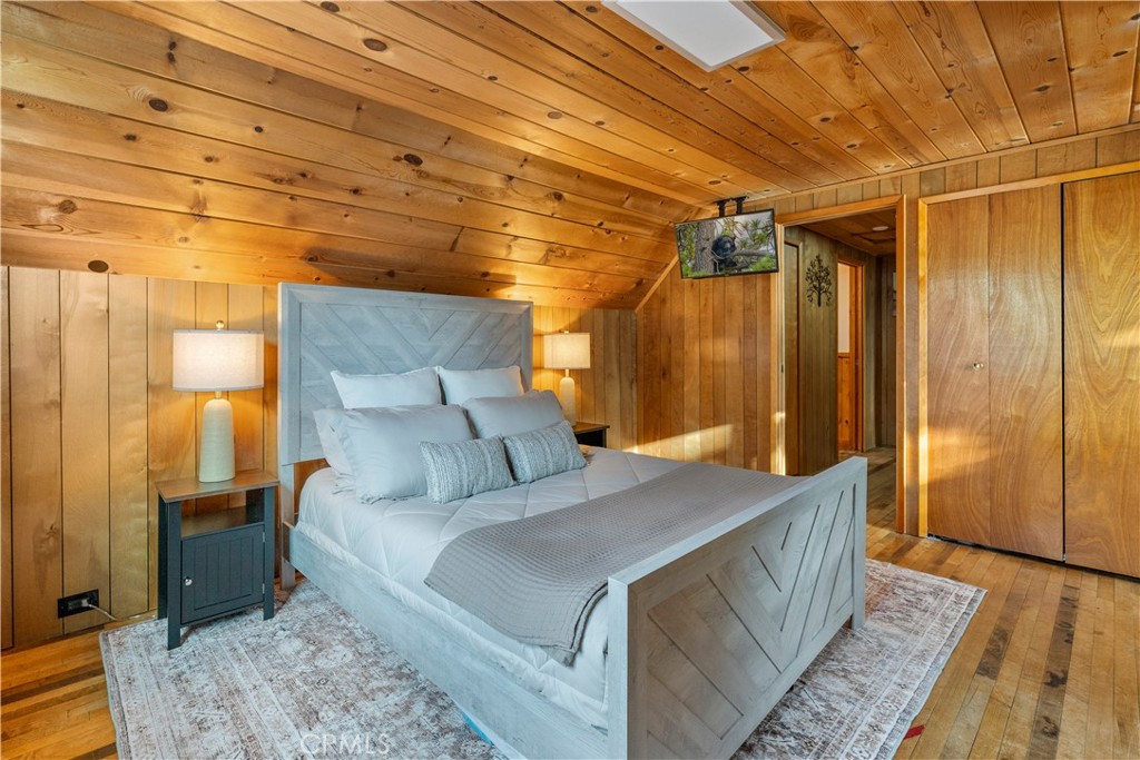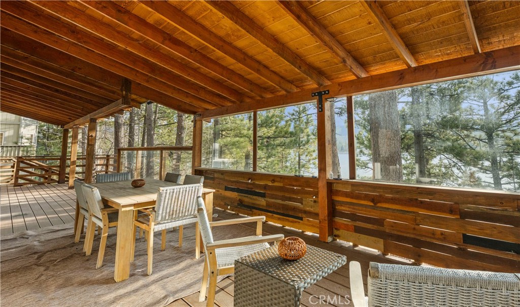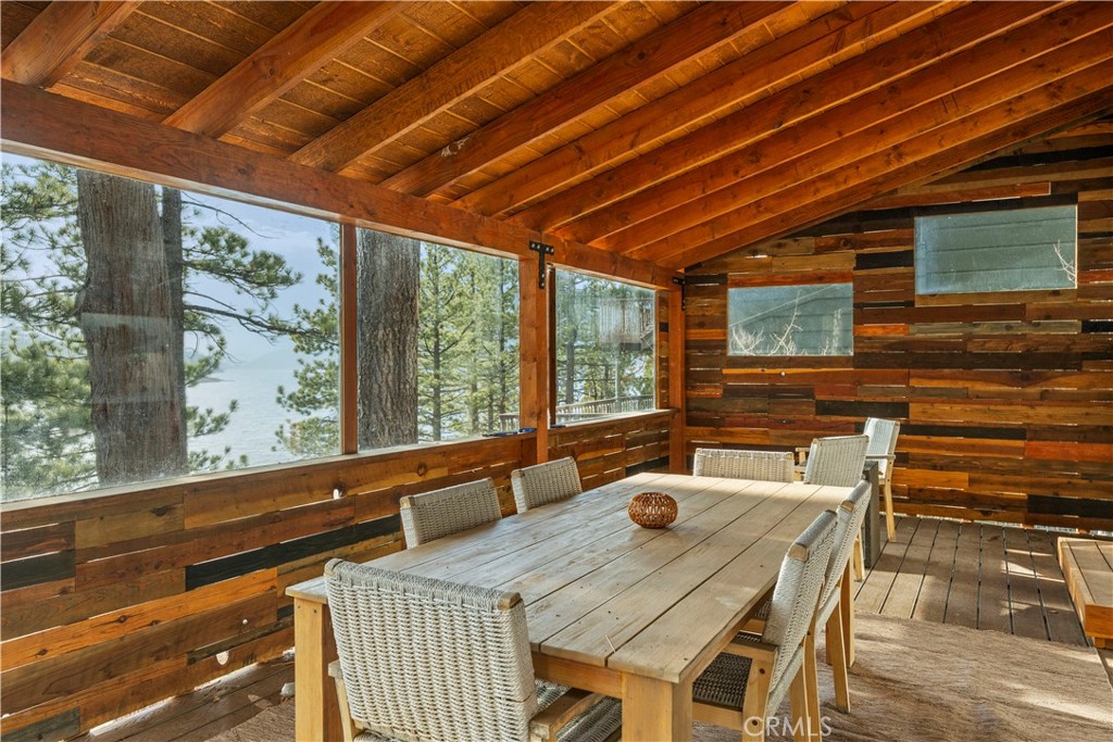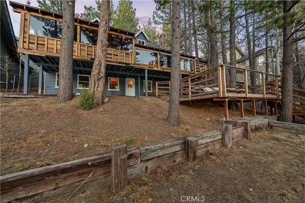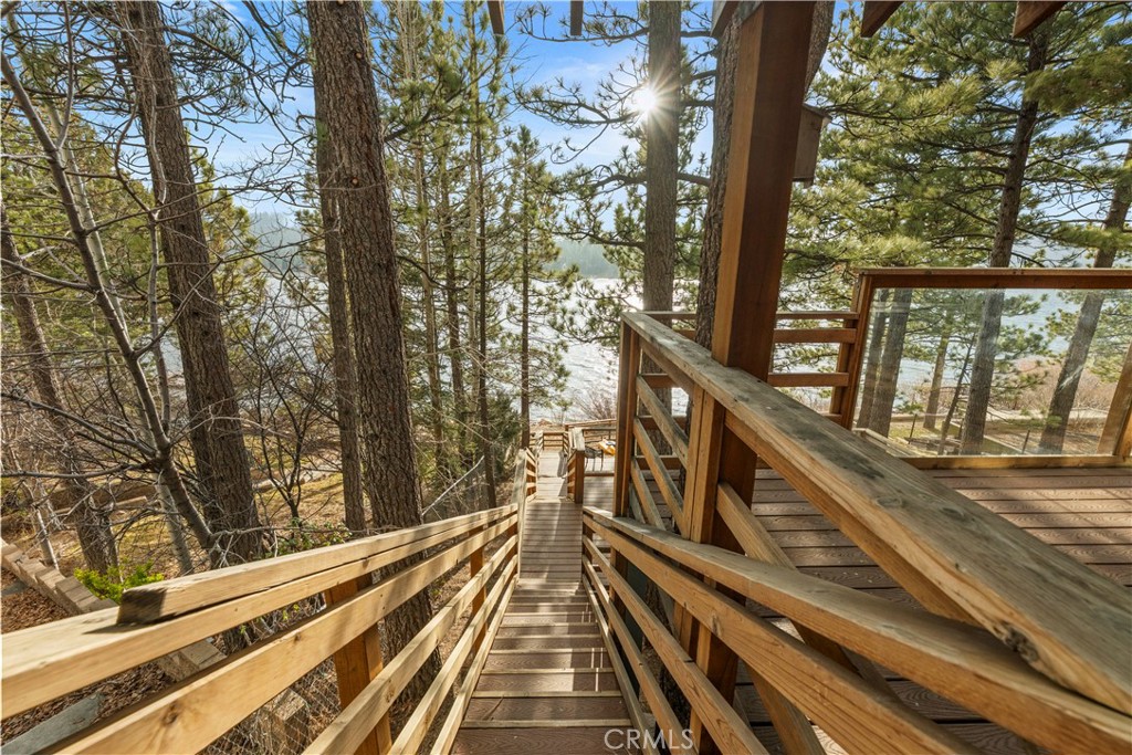 Rare Gilner Point Gem - Expansive 4BR/2BA Lakeside Retreat! Discover the ultimate mountain escape and privacy on Lake Drive - perfectly located with prime lake frontage in the exclusive Gilner Point peninsula community of Big Bear Lake. This 2,170 SF home blends classic 1950s lakefront charm on a large wooded lot featuring 4 bedrooms and 2 bathrooms - making it a premier choice for a multi-family getaway and a highly desirable income property. It is time for a new owner to create your own lasting memories. Step inside to a welcoming living space centered around a warm fireplace, perfect for chilly mountain evenings and large windows frame the lake views. The primary bedroom, conveniently located on the main level, offers a serene sanctuary overlooking the lake. Upstairs, you'll find two additional bedrooms and another guest bathroom, each exuding its own unique charm and boasting lake views. Step outside on the expansive sprawling outdoor deck surrounded by mature pine trees overlooking the lake with ample space for outdoor entertaining - relax, dine and enjoy the natural beauty all around you. The three-story design includes a 520 SF lower floor with room for a ping pong and pool table with additional storage and direct access to a second deck in the wooded backyard. Lastly, a large 2-car attached garage for year-round convenience. This lakefront retreat is ready to be enjoyed by a new owner on one of Big Bear Lake's most sought after stretches of shoreline. Whether you're seeking a tranquil escape - enjoy summer days on the lake or an outdoor adventure hiking the mountains and winter at the nearby ski slopes - this property puts you in the heart of it all. Just a short drive to the shops, dining, and festivals of Big Bear Village, this is your chance to own a piece of Southern California's favorite four-season destination. Whether you're seeking a tranquil escape or an outdoor adventure, this exceptional property offers the perfect blend of lakefront serenity, and outdoor recreation.